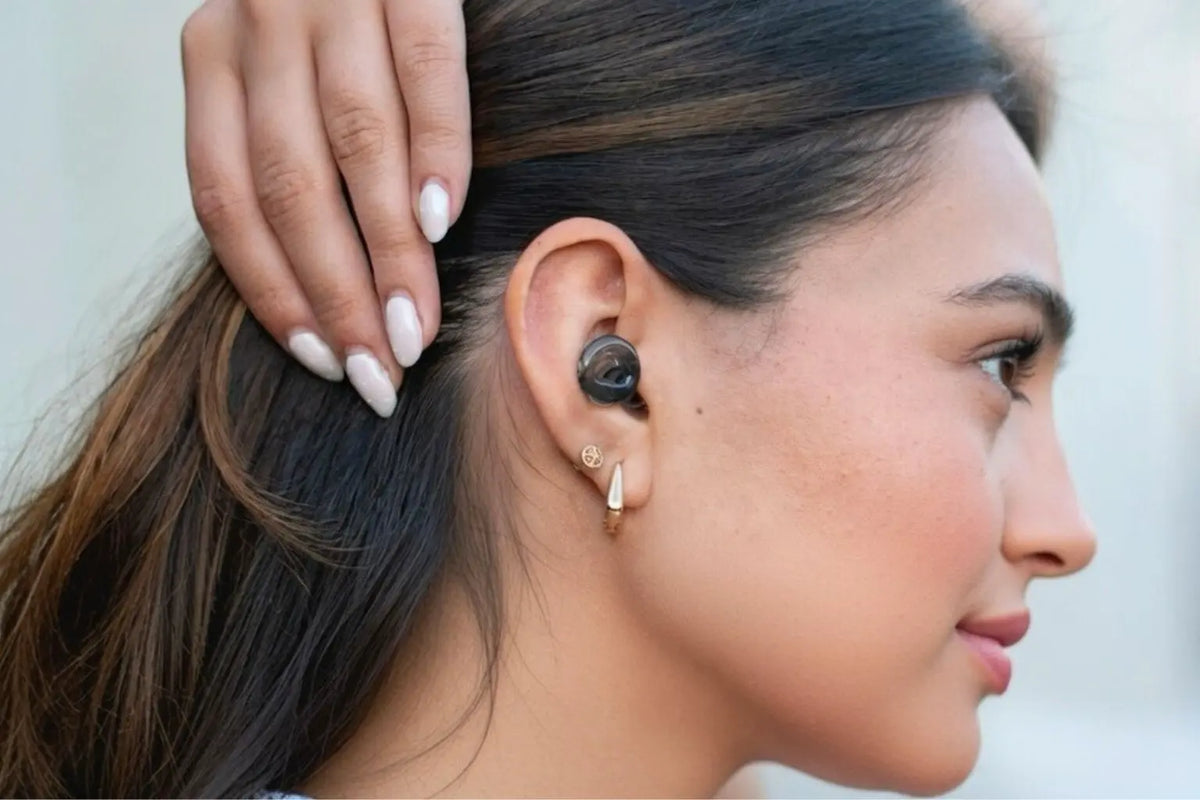 Mujer con los tapones Mood Earplugs Pro Onyx mientras camina por la ciudad, perfectos para reducir el ruido sin perder conexión con el entorno. Mujer con los tapones Mood Earplugs Pro Onyx mientras camina por la ciudad, perfectos para reducir el ruido sin perder conexión con el entorno.